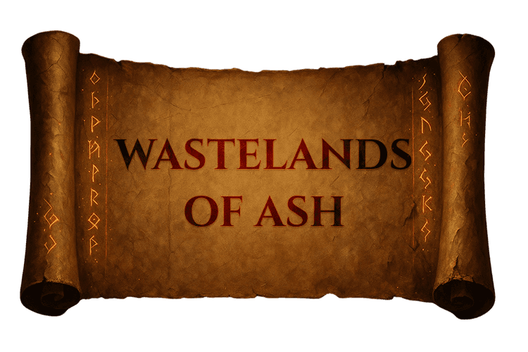 A bleak wasteland of gray ash plains, burned forests reduced to skeletal remains.