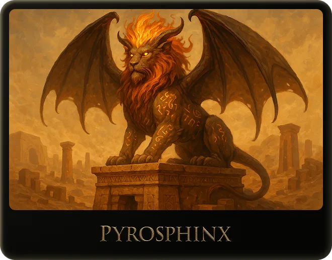 Pyrosphinx tests intruders with riddles—failures burn in its flames.